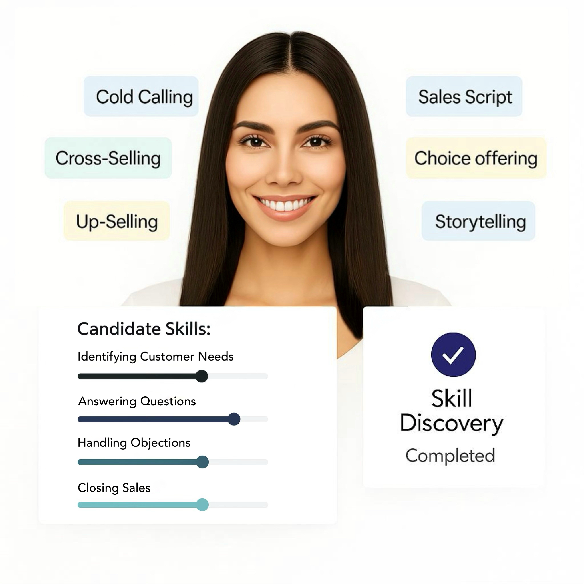 Un test de reclutamiento adaptado a las particularidades de tu empresa, productos y estilo de venta. El candidato se enfrentará a una conversación basada en desafíos reales, y el informe del test destacará las competencias clave necesarias en tu equipo.